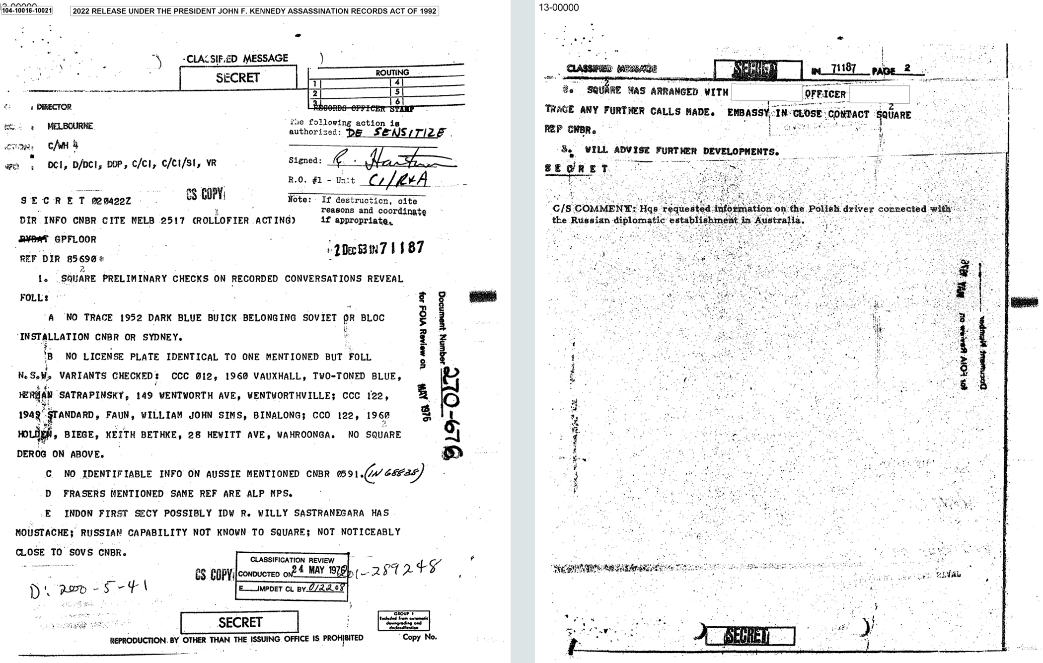 An interesting aside… neither RIF#s 180-10115-10111 nor 180-10115-10112 can presently be found on either the National Archives database or on the Mary Ferrell website, although both records were apparently “Released in Full” by the ARRB in July 1997.