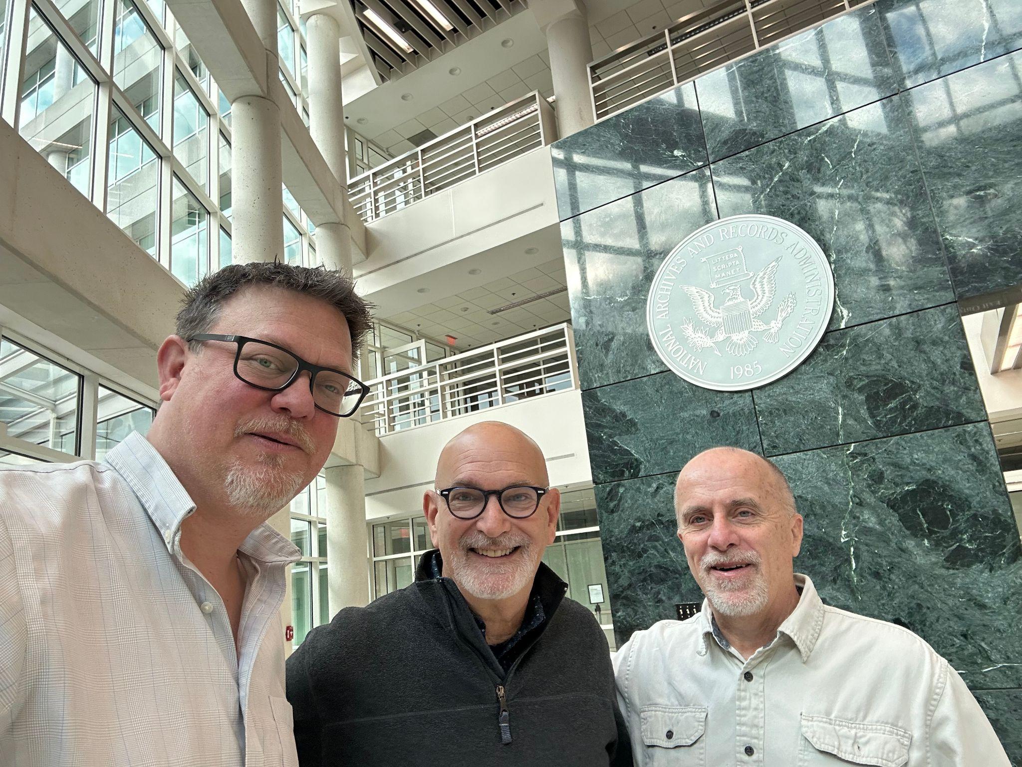 Andrew Iler, Jeff Crudele and Paul Bleau at the National Archives