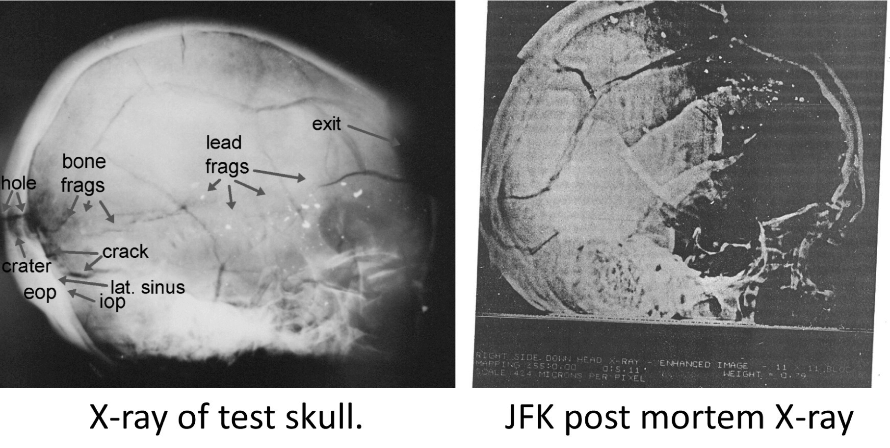 - Since no copper was found on the curb, the entire copper jacket must have been left inside of JFK’s head—or inside the limousine. But none was found in the limousine, and none is visible on the X-rays.