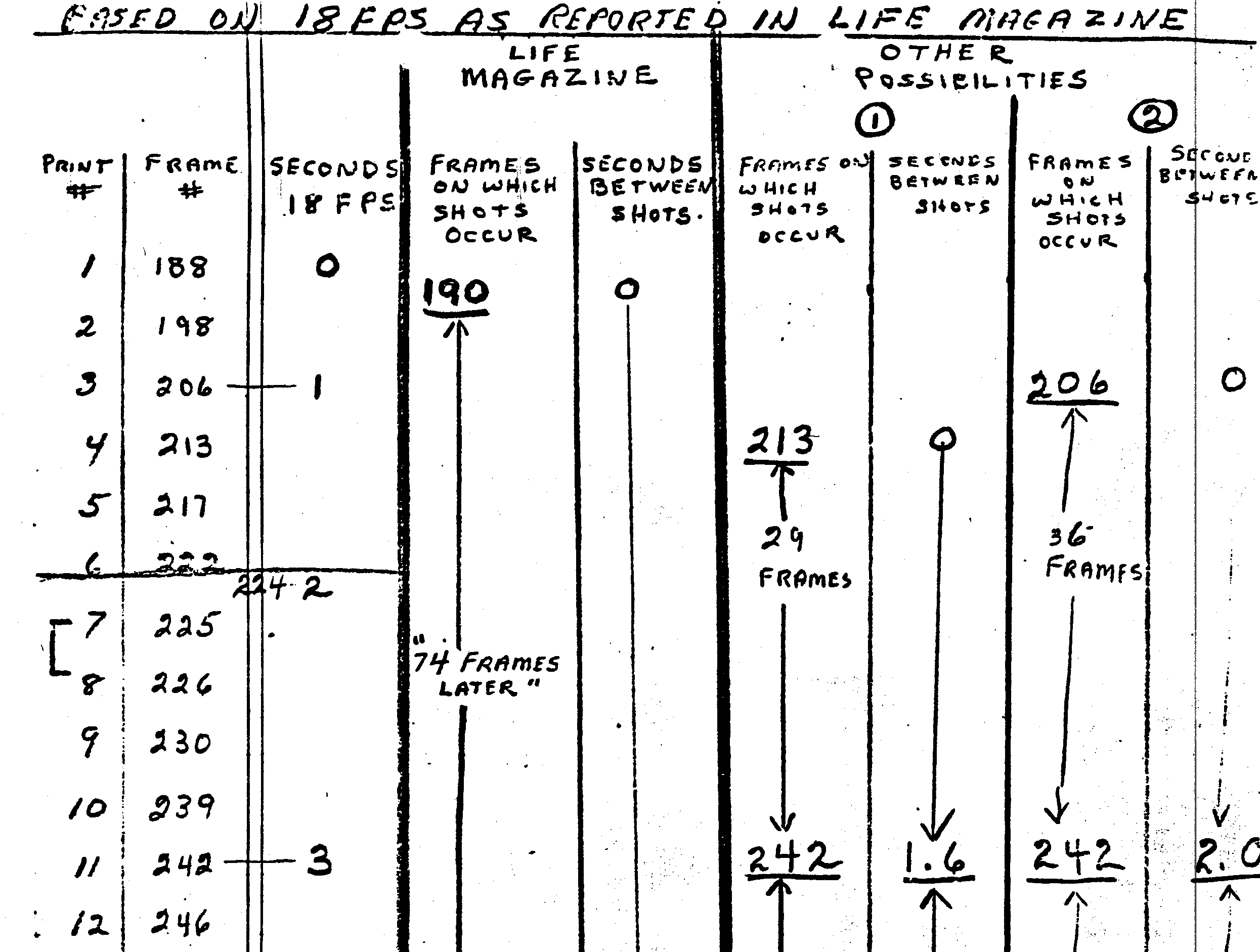16 The HSCA’s photographic panel did note in its report “only the average, and not the precise, running speeds for the camera are known.” Despite this, the panel would go ahead and calculate time between frames anyway. HSCA Report Appendix, Volume VI, p. 31.
