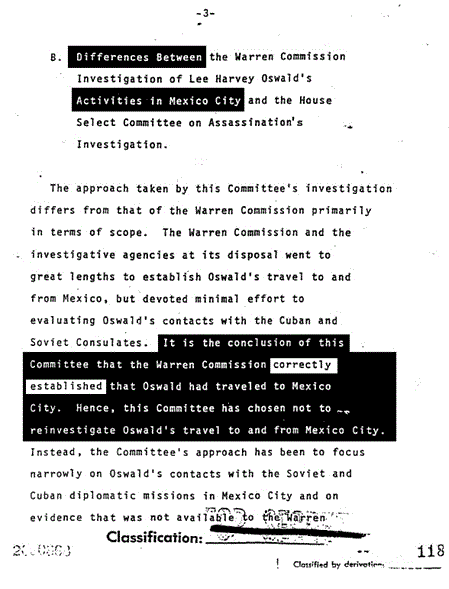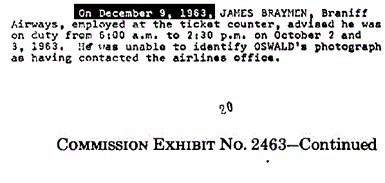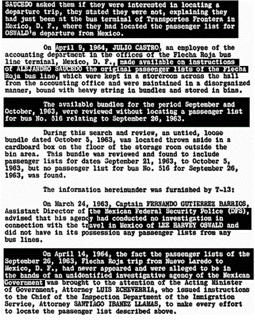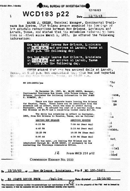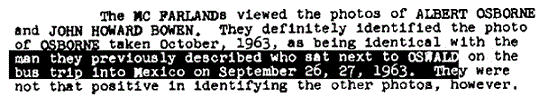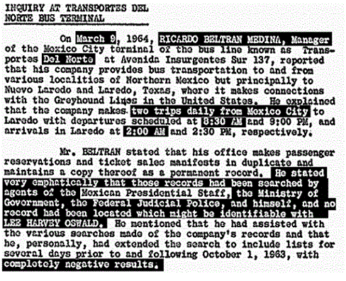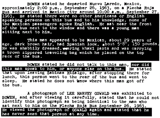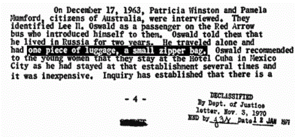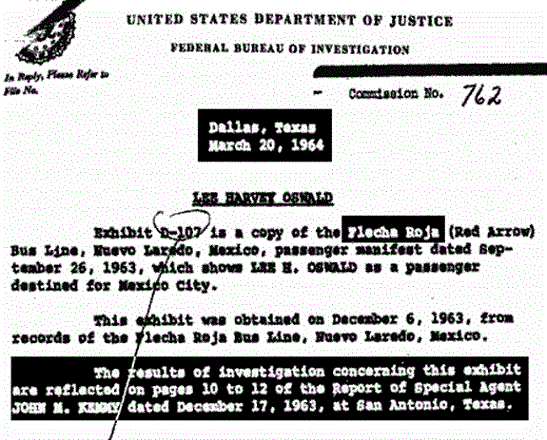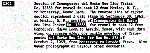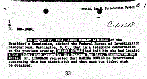 Let us mention another less-than-candid practice of “Tracking Oswald”. Time after time, Baer intones that he has studied the JFK case for ten years and read the entire 2 million page declassified record of the Assassination Records Review Board. In fact, he (unconvincingly) tries to insinuate that he has scanned the two million pages into his own personal database. Yet, if that were so, why does he show us pages printed from the Warren Commission Report as being redacted? Which they are not. He does this more than once, at least three times. Is he trying to present old, mildewed information as somehow spankingly brand new?