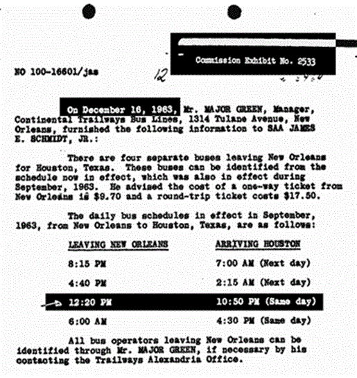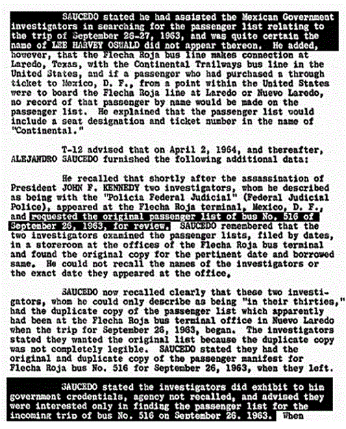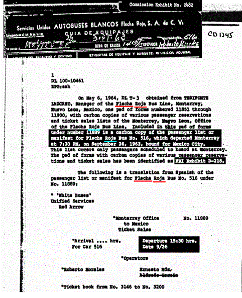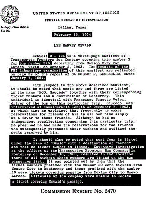 Contrary to what the program asserts, the evidence of Oswald in Mexico City—a Spanish-English dictionary, blank postcards, etc.—was not immediately seized and turned over to the FBI. And contrary to what Baer says, the Russians did not give him the postcard in evidence. These pieces of evidence—including the postcards—were adduced into the record a week after the assassination by Marina Oswald’s companion Ruth Paine. (Reclaiming Parkland, by James DiEugenio, p. 344) That Baer relies so much on these postcards without telling the viewer about their provenance tells us a lot about both his honesty and his knowledge base. Or perhaps both. Because the truth is that the Warren Commission had a hard time placing Oswald in Mexico City. Months later, in August, Priscilla Johnson, who replaced Ruth Paine as Marina’s companion, was still surfacing evidence about Oswald’s bus rides in Mexico City. This drove Warren Commission lawyer Wesley Liebeler up the wall. (ibid)
