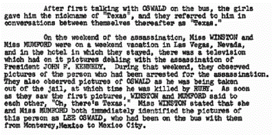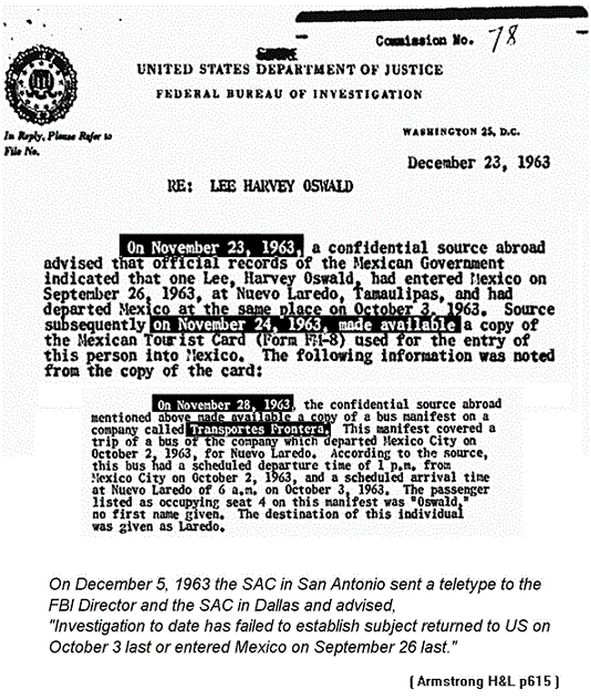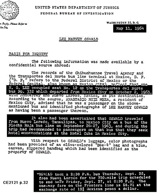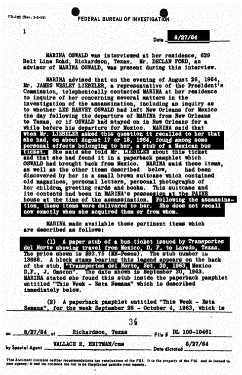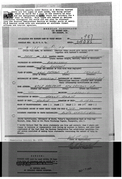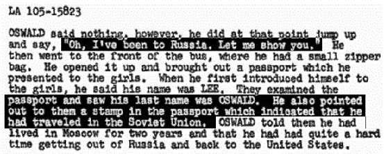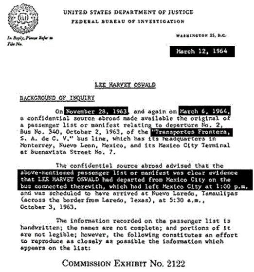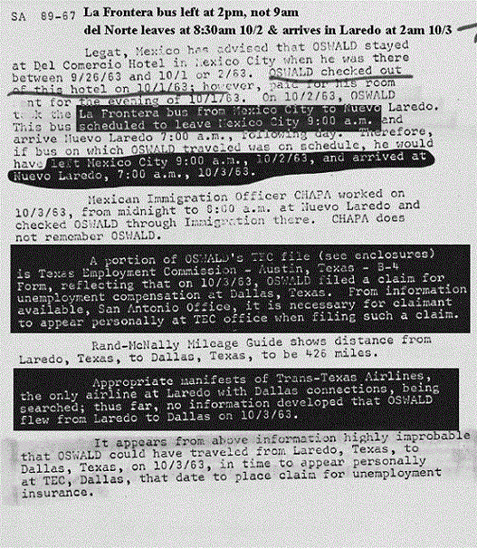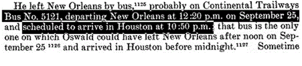 The idea that if you buy a postcard with a bullfight on it, then you went to a bullfight is not logically sound. Tourists buy all kinds of postcards in foreign countries concerning places they do not actually go to. It is true that Marina Oswald said that her husband told her that he went to a bullfight in Mexico City. (WR, p. 735) But this is in direct contradiction to the fact that she had previously denied he was in Mexico City to the Secret Service during their first interview. And she denied it twice. (Secret Service report of Charles Kunkel from 11/24-11/30)
