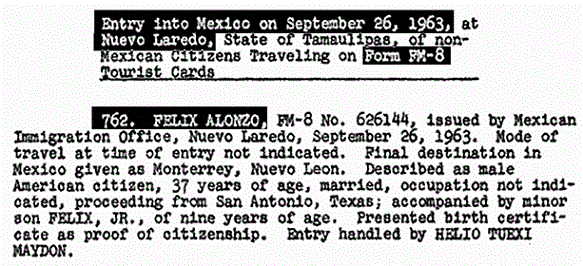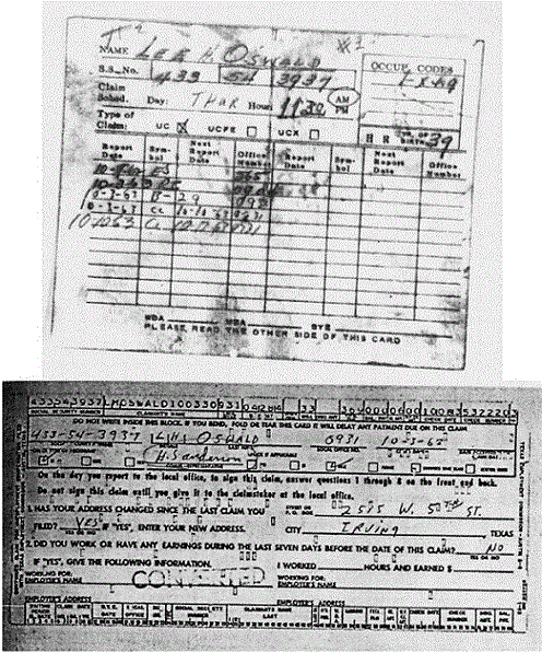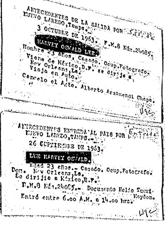 These cards were used in a threesome for making different legends of the same re-defector, who arrived in the U.S. with his wife and their 4-month-old daughter on June 13, 1962, thanks to a $435.71 loan from the State Department. S.A. Fain debriefed him in Fort Worth twice. His final report, dated on August 30, 1962, stated Oswald “agreed to contact the FBI if at any time any individual made any contact of any nature under suspicious circumstances with him.”