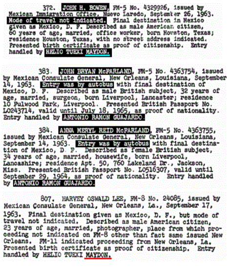 Baer’s intent appears to be to keep on muddying the waters. He even said to Waxman: “We don’t know exactly what the Cubans told him in Mexico City,” although the CIA did know that they only talked about an in-transit visa. The acting consul, Alfredo Mirabal, was also a CuIS officer, identified by the CIA as “Chief of Intel”24. Before the HSCA, Mirabal adamantly stated having judged Oswald’s visit to the Cuban consulate on September 27, 1963, as “a provocation.”25