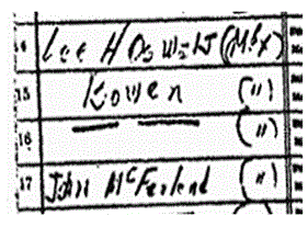 - A third CIA index card for “Lee H. Oswald” was attached to file (100-300-011) about the Fair Play for Cuba Committee (FPCC) on October 25, 1963. FBI Special Agent Warren De Brueys had reported from New Orleans that Oswald confessed being “a member of the alleged New Orleans chapter of FPCC,” a pro-Castro group listed as subversive.